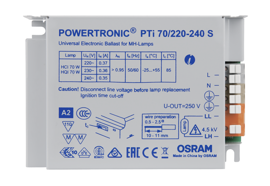 Сочетание металлогалогеннх ламп с ЭПРА: HCI-T, HQI-TS 70W.