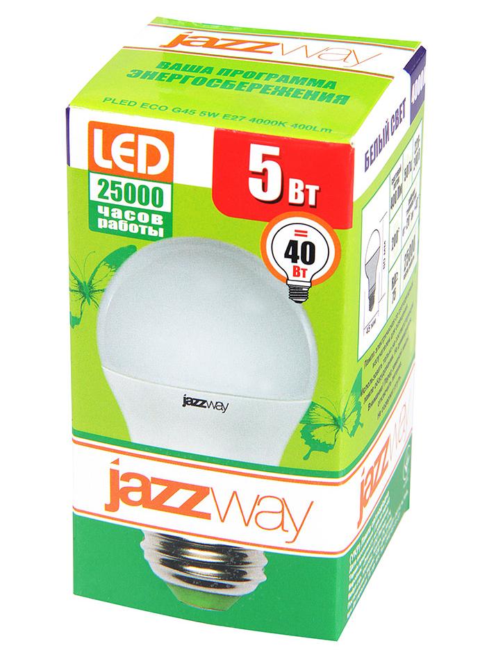 Лампочка JAZZWAY PLED-ECO G45 5W 230V E27 4000 K шарик