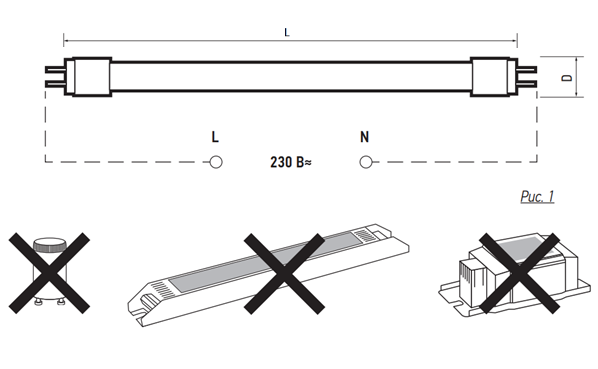 Светодиодная лампа PLED Т8 с неповоротным цоколем G13.Прямой заменой (в светильниках с люминесцентными лампами) они не могут считаться, так как требуется изменение электрической схемы подключения.