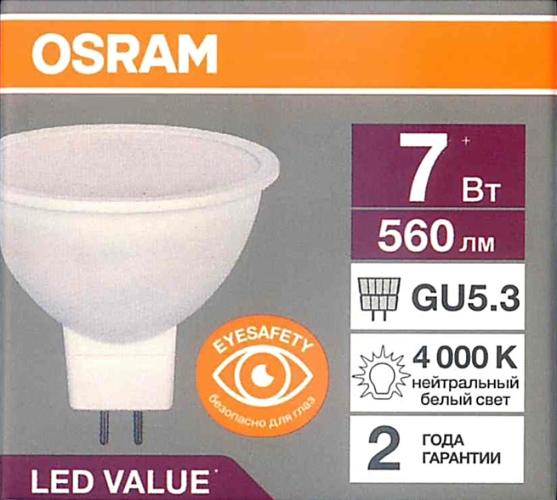 Светодиодная лампа LV MR1660 7 SW/840 230V GU5.3 RU 110° OSRAM