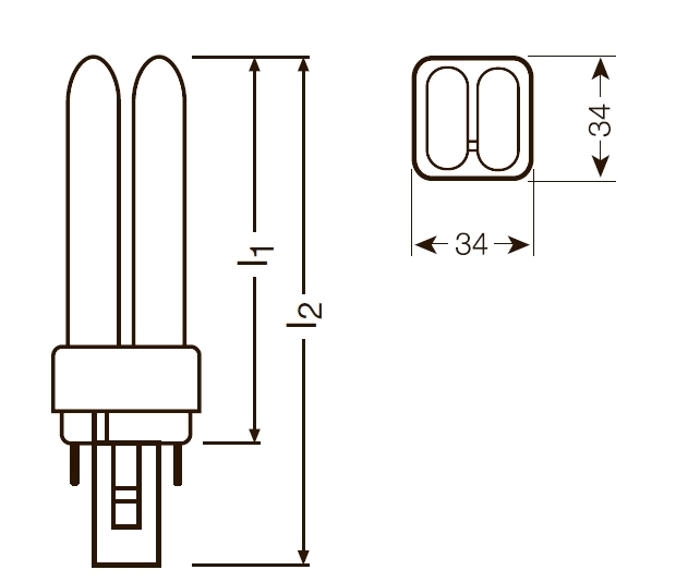 Люминесцентная лампа OSRAM DULUX D 13W/830 2p G24d-1 КНР