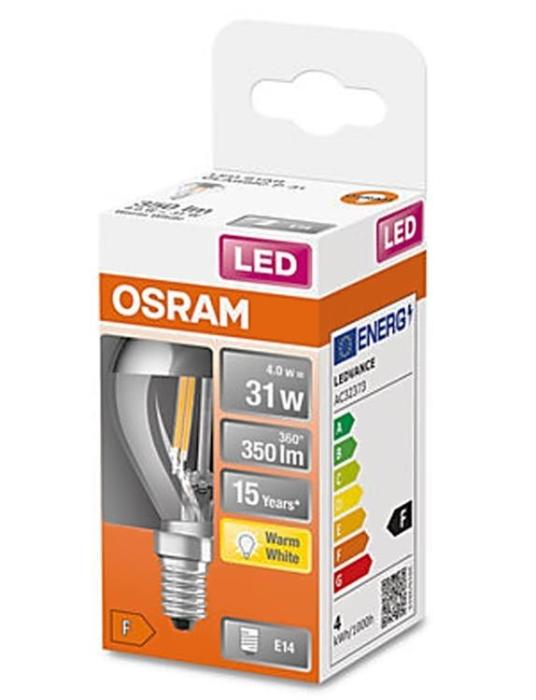 Светодиодная лампа P31 4W/827 230V E14 FIL MIRROR SILVER OSRAM