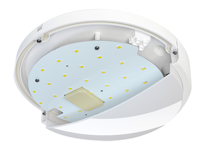 Светильник оснащен встроенным сверхчувствительным микроволновым датчиком движения.Монтажные винты в комплекте.