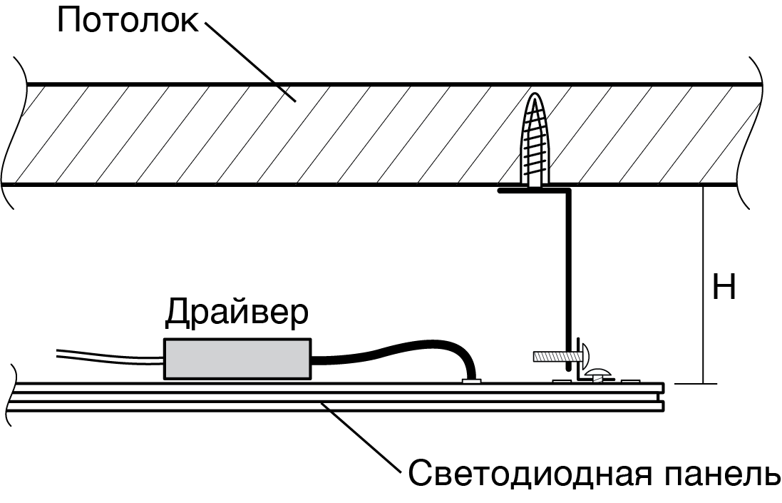 Комплект PPL A04 предназначен для жесткого крепления светодиодной панели типа PPL к потолку или к стене на расстоянии 50 мм. В комплект A04 PPL входит четыре длинных уголка для крепления к потолку, четыре крепежных уголка, которые монтируются на задней стороне светодиодной панели по углам, винты и саморезы.Высота крепления Н, мм: 50.