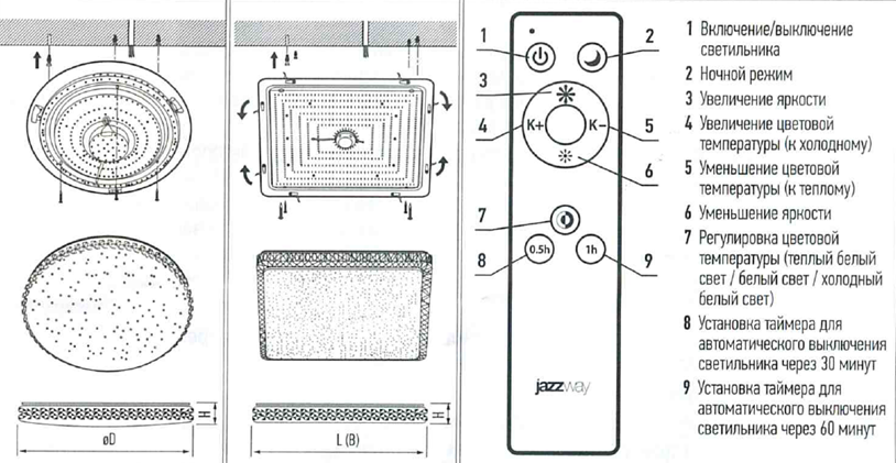Выбор режимов работы осуществляется с помощью пульта дистанционного управления, входящего в комплект.