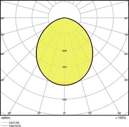 Световой поток не направляется в верхнюю полусферу (ULOR 0%) при установке под углом 0°